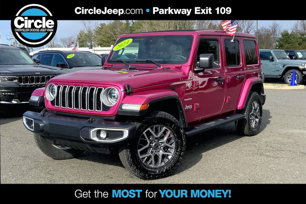 WE ARE OPEN FOR ALL YOUR SALES AND SERVICE NEEDS! COMPLETE ONLINE BUYING EXPERIENCE AVAILABLE! Circle CDJR is proud to offer this beautiful-looking and fun 2024 Jeep Wrangler a positively stunning-looking SUV with the following Features: Quick Order Package 24G Sahara, Safety Group (Auto High Beam Headlamp Control, Blind Spot & Cross Path Detection, and ParkSense Rear Park Assist System), Smoker's Group (Cigar Lighter and Removable Ash Tray), Technology Group (12.3" Touchscreen Display, 4G LTE Wi-Fi Hot Spot, Alpine Premium Audio System, Apple CarPlay, Auto-Dimming Rear-View Mirror, Connected Travel & Traffic Services, Connectivity - US/Canada, Disassociated Touchscreen Display, Google Android Auto, GPS Navigation, HD Radio, Integrated Center Stack Radio, Integrated Off-Road Camera, Integrated Voice Command w/Bluetooth, Radio: Uconnect 5 Nav w/12.3" Display, SiriusXM Radio Service, SiriusXM w/360L, and Universal Garage Door Opener), FCA US LLC Certified Pre-Owned Certified, 110 MPH Vehicle Max Speed Calibration, 3.45 Overall Top Gear Ratio, 4-Wheel Disc Brakes, 8 Speakers, ABS brakes, Air Conditioning, Alloy wheels, AM/FM radio: SiriusXM, Apple CarPlay/Android Auto, Automatic temperature control, Aux Battery, Black Vinyl Floor Covering, Brake assist, Cargo Compartment Dress-Up, Cloth Low-Back Bucket Seats, Compass, Delay-off headlights, Driver door bin, Driver vanity mirror, Dual front impact airbags, Dual front side impact airbags, Electronic Stability Control, Emergency communication system: Jeep Connect, Front anti-roll bar, Front Bucket Seats, Front Center Armrest w/Storage, Front dual zone A/C, Front fog lights, Front reading lights, Fully automatic headlights, Heated door mirrors, Heated front seats, Heated steering wheel, Heavy Duty Suspension w/Gas Shocks, Illuminated entry, Integrated roll-over protection, Low tire pressure warning, Mopar Black Tubular Side Steps, Non-Lock Fuel Cap w/o Discriminator, Occupant sensing airbag, Outside temperature display, Overhead airbag, Panic alarm, ParkView Rear Back-Up Camera, Passenger door bin, Passenger vanity mirror, Power door mirrors, Power steering, Power Top Quarter Window Storage Bag, Power windows, Radio data system, Radio: Uconnect 5 w/12.3" Display, Rear anti-roll bar, Rear reading lights, Rear Window Defroster, Rear Window Wiper/Washer, Remote keyless entry, Removable Rear Quarter Windows, Security system, Sky 1-Touch Power Top, Speed control, Split folding rear seat, Steering wheel mounted audio controls, Stop-Start Dual Battery System, Tachometer, Telescoping steering wheel, Tilt steering wheel, Traction control, Trip computer, Variably intermittent wipers, Voltmeter, and Wheels: 18" x 7.5" Machine/Painted Gray.
