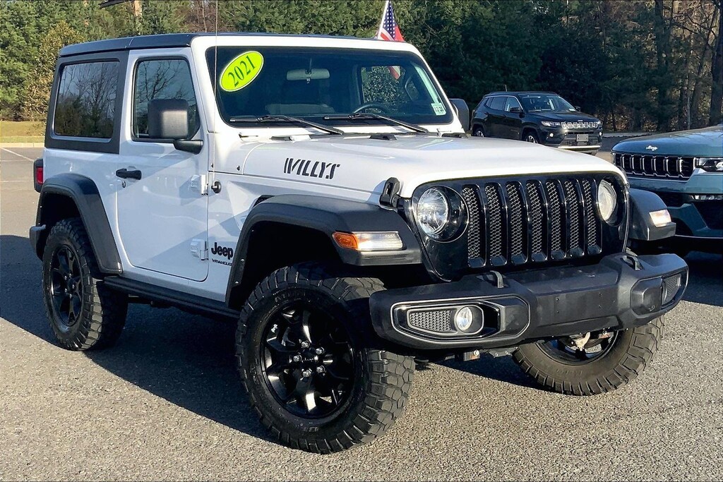WE ARE OPEN FOR ALL YOUR SALES AND SERVICE NEEDS! COMPLETE ONLINE BUYING EXPERIENCE AVAILABLE! Circle CDJR is proud to offer this stunning-looking and fun 2021 Jeep Wrangler a positively fantastic-looking SUV with the following Features: Quick Order Package 22K Willys Sport (4-Wheel Drive Swing Gate Decal, 97 MPH Vehicle Max Speed Calibration, Anti-Spin Differential Rear Axle, Black Grille, Black Trail Rated Badge, Deep Tint Sunscreen Windows, Matte Black Jeep Badge, Mold In Color Bumper w/Gloss Black, Wheels: 17" x 7.5" Moab Black Aluminum, Willys, Willys Hood Decal, and Wrangler Decal), 110 mph Vehicle Max Speed Calibration, 3.45 Rear Axle Ratio, 4-Wheel Disc Brakes, 8 Speakers, ABS brakes, Air Conditioning, AM/FM radio, Black 3-Piece Hard Top, Brake assist, Cloth Low-Back Bucket Seats, Compass, Delay-off headlights, Driver door bin, Driver vanity mirror, Dual front impact airbags, Dual front side impact airbags, Electronic Stability Control, For More Info Call 800-643-2112, Freedom Panel Storage Bag, Front anti-roll bar, Front Bucket Seats, Front Center Armrest w/Storage, Front fog lights, Front reading lights, Integrated roll-over protection, Jeep Trail Rated Kit, Low tire pressure warning, MOPAR All-Weather Floor Mats (DISC), MOPAR Grab Handle Kit, No Soft Top, Normal Duty Suspension, Occupant sensing airbag, Outside temperature display, ParkView Rear Back-Up Camera, Passenger door bin, Passenger vanity mirror, Power steering, R1234YF A/C Refrigerant, Radio data system, Radio: Uconnect 3 w/5" Display, Rear anti-roll bar, Rear reading lights, Rear Window Defroster, Rear Window Wiper/Washer, Speed control, Steering wheel mounted audio controls, Tachometer, Telescoping steering wheel, Tilt steering wheel, Traction control, Trip computer, Variably intermittent wipers, and Wheels: 17" x 7.5" Black Steel Styled.
