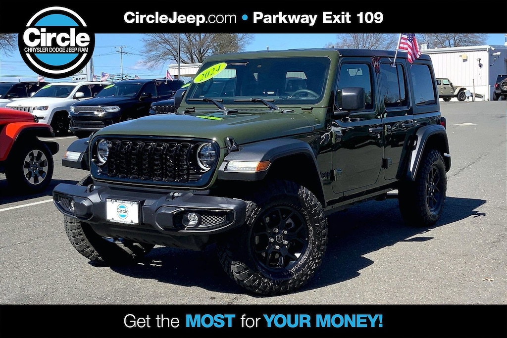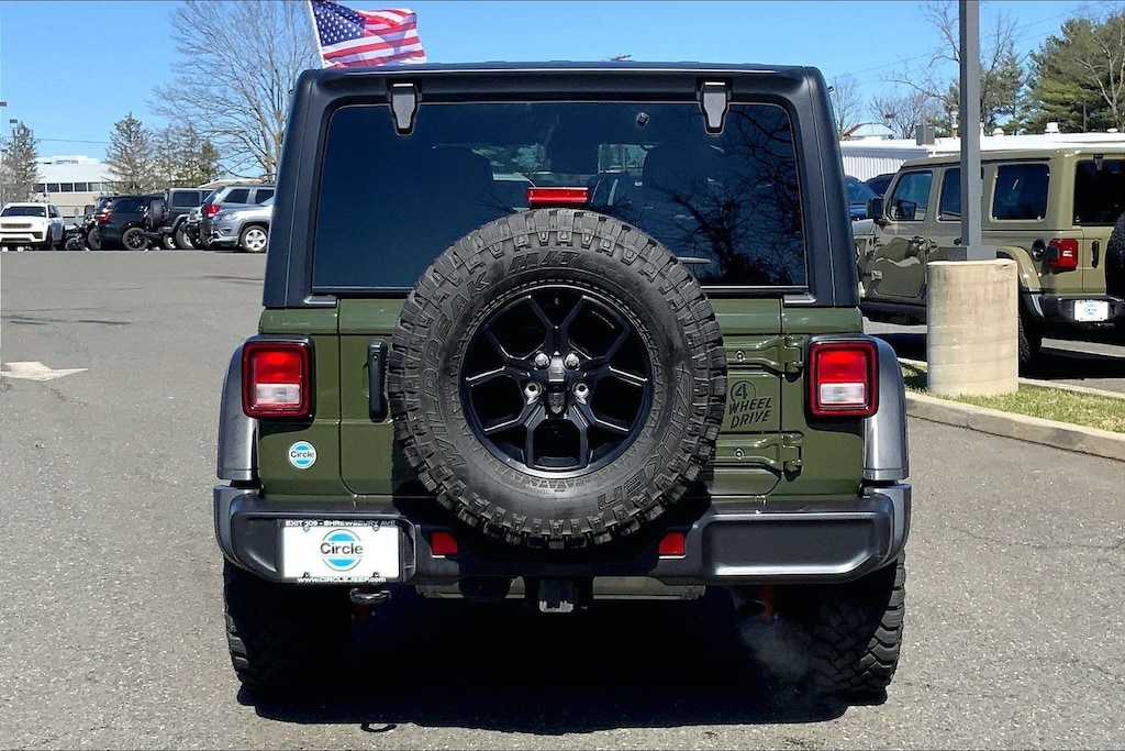 WE ARE OPEN FOR ALL YOUR SALES AND SERVICE NEEDS! COMPLETE ONLINE BUYING EXPERIENCE AVAILABLE! Circle CDJR is proud to offer this terrific-looking and fun 2024 Jeep Wrangler an absolutely good-looking SUV with the following Features: Convenience Group (2-Door Passive Entry, Front Door Locks, Air Conditioning w/Auto Temperature Control, Air Filtering, Cluster 7.0" TFT Color Display, Emergency/Assistance Call, Heated Front Seats, Heated Steering Wheel, Remote Start System, and Universal Garage Door Opener), Quick Order Package 22W Willys (240 Amp Alternator, 4-Wheel Drive Swing Gate Decal, 7 & 4 Pin Wiring Harness, 97 MPH Vehicle Max Speed Calibration, Advanced Brake Assist, Automatic Headlamps, Auxiliary Switches, Black Grille, Class II Receiver Hitch, Conventional Differential Front Axle, Corning Gorilla Glass, Dana M210 Wide HD Tube Front Axle, Dana M220 Wide Rear Axle, Daytime Running Lamps LED Accents, Deep Tint Sunscreen Windows, E-Locker Rear Axle, Enhanced Adaptive Cruise Control, Front 1-Touch Down Power Windows, Front LED Fog Lamps, Full Speed Forward Collision Warning Plus, Injection Molded Black Rear Bumper, LED Premium Reflector Headlamps, Mold In Color Bumper w/Gloss Black, Molded in Color Rubicon Highline Flare, MOPAR All-Weather Floor Mats, Off-Road Plus Mode, Power Heated Mirrors, Premium Wrapped Steering Wheel, Remote Keyless Entry, Security Alarm, Speed Sensitive Power Locks, Sun Visors w/Illuminated Vanity Mirrors, Wheels: 17" x 7.5" Painted Black, Willy's Suspension, Willys, and Willys Hood Decal), Technology Group (Alpine Premium Audio System), FCA US LLC Certified Pre-Owned Certified, 110 MPH Vehicle Max Speed Calibration, 4-Wheel Disc Brakes, 8 Speakers, ABS brakes, Air Conditioning, AM/FM radio, Apple CarPlay/Android Auto, Aux Battery, Black 3-Piece Hard Top, Brake assist, Cloth Low-Back Bucket Seats, Compass, Delay-off headlights, Driver door bin, Driver vanity mirror, Dual front impact airbags, Dual front side impact airbags, Electronic Stability Control, Freedom Panel Storage Bag, Front anti-roll bar, Front Bucket Seats, Front Center Armrest w/Storage, Front fog lights, Front reading lights, Integrated roll-over protection, Jeep Trail Rated Kit, Low tire pressure warning, MOPAR Hardtop Headliner, No Soft Top, Non-Lock Fuel Cap w/o Discriminator, Normal Duty Suspension, Occupant sensing airbag, Outside temperature display, Overhead airbag, ParkView Rear Back-Up Camera, Passenger door bin, Passenger vanity mirror, Power steering, Radio data system, Radio: Uconnect 5 w/12.3" Display, Rear anti-roll bar, Rear reading lights, Rear Window Defroster, Rear Window Wiper/Washer, Speed control, Split folding rear seat, Steering wheel mounted audio controls, Stop-Start Dual Battery System, Tachometer, Telescoping steering wheel, Tilt steering wheel, Traction control, Trip computer, Variably intermittent wipers, and Wheels: 17" x 7.5" Black Steel Styled. Odometer is 7658 miles below market average!
